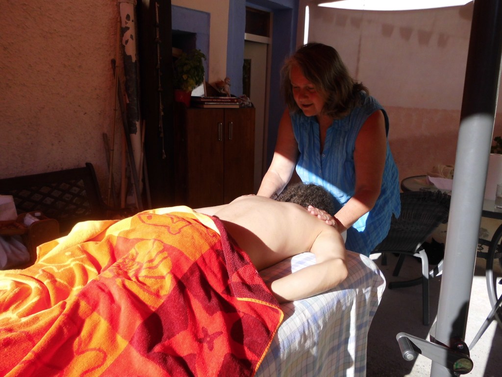 Biete mit Honig eine Rücken-Massage an; viele empfinden diese als sehr wohltuend. Honig wird bei vielen Beschwerden als Wundermittel angeboten. Schlacken werden abtransportiert, Muskelverspannungen und manche Rückenschmerzen lösen sich. (Endorphine werden freigesetzt, die schmerzstillend sind.) Erleichterung bei Stress und Schlafstörungen, Auswirkung auf die inneren Organe. Nicht bei überempfindlicher Haut, und blutverdünnenden Medikamente .